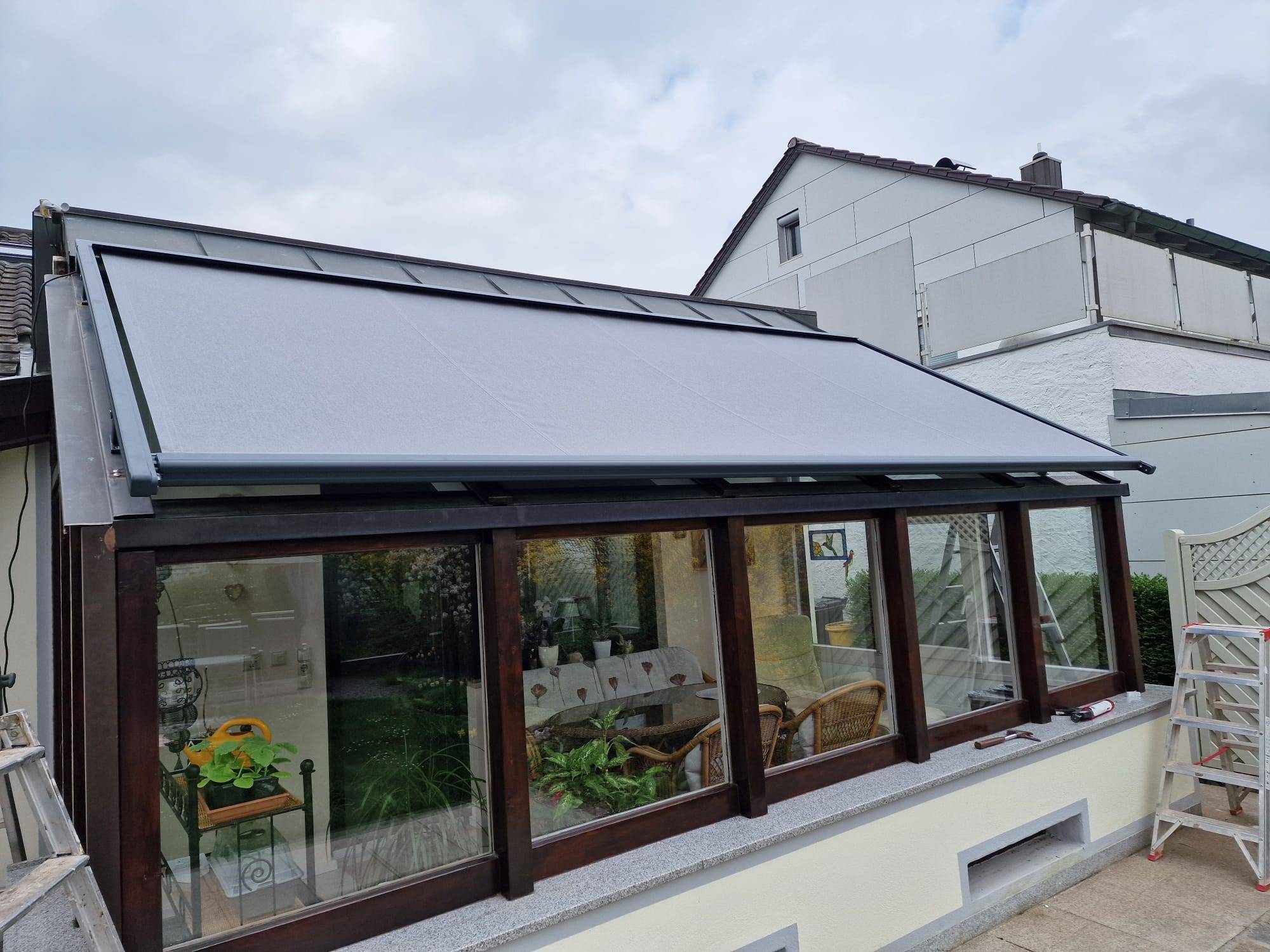Mit einer Aufdachmarkise für deinen Wintergarten wird aus heißer Sonne ein angenehm kühler Lieblingsplatz. Die Markise sitzt elegant außen auf dem Dach und hält die Wärme schon ab, bevor sie überhaupt ins Innere gelangt – für ein spürbar besseres Raumklima, selbst an heißen Tagen.